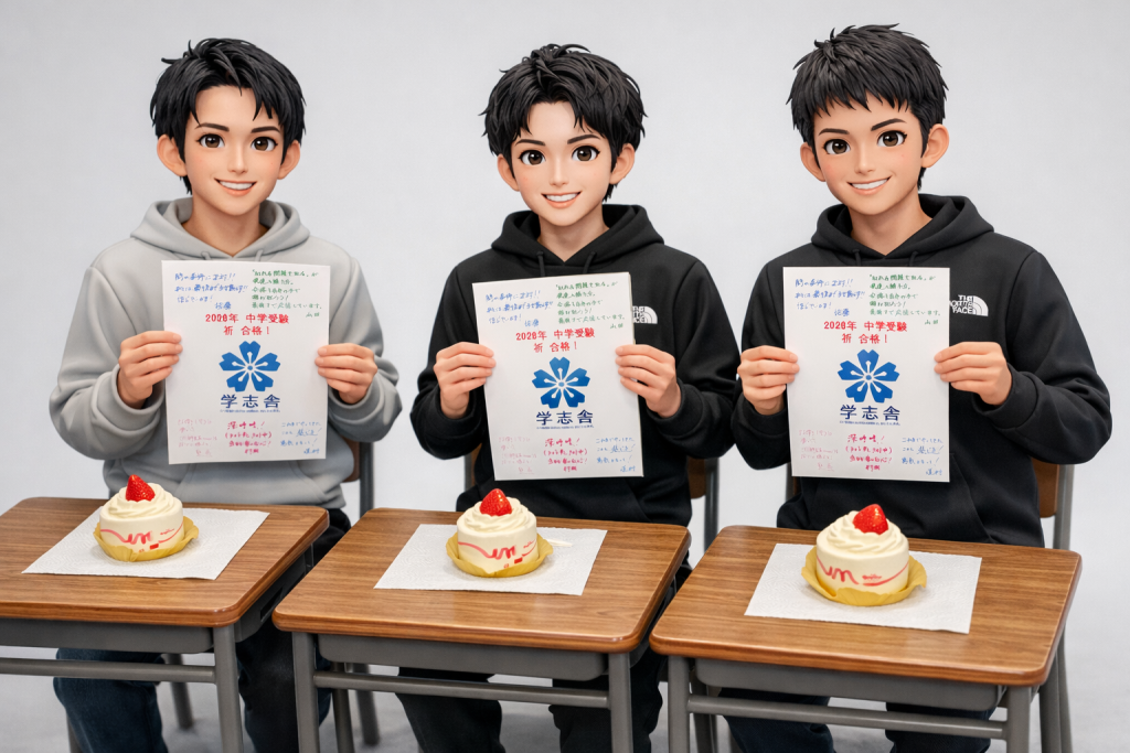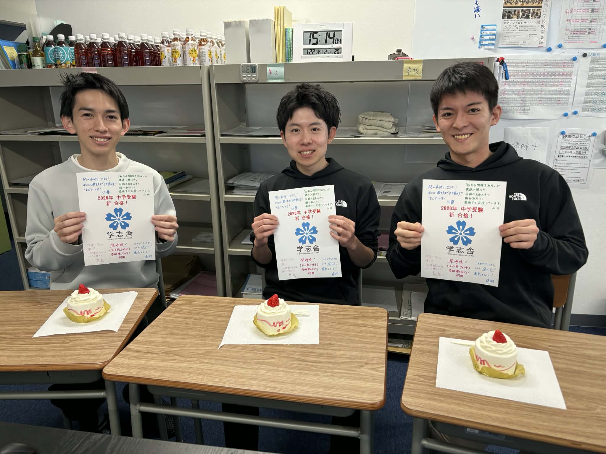 ※3人が手に持っているのは小6生に配布した「応援の寄せ書き」になります。