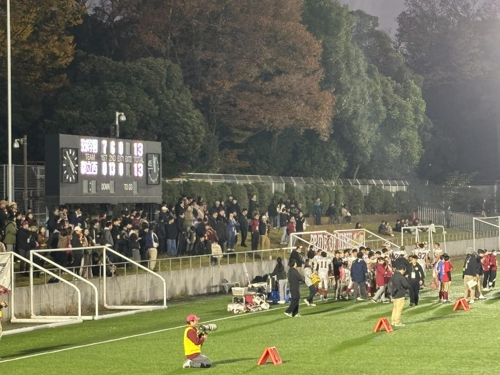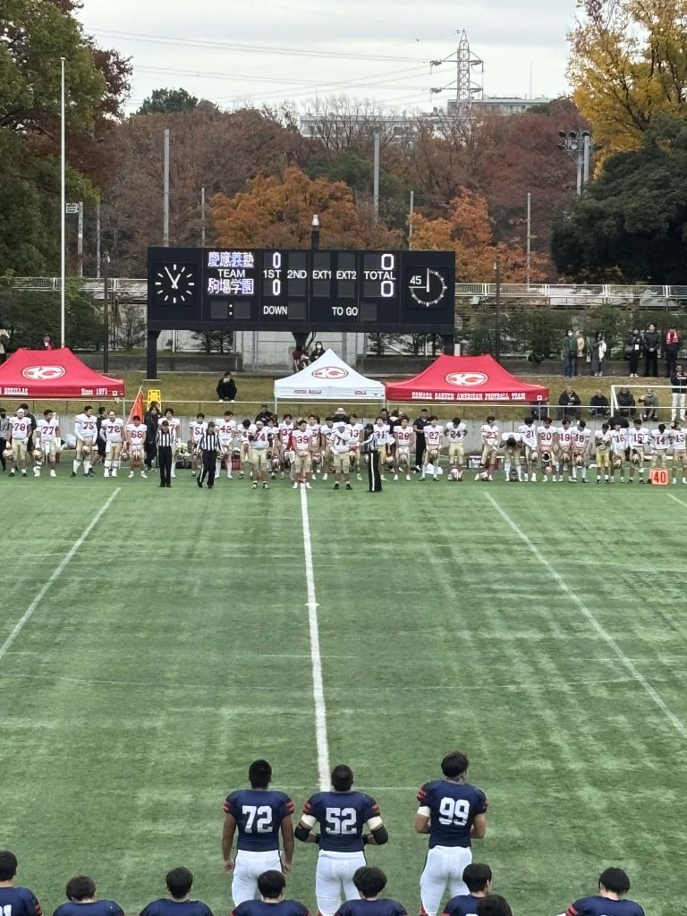 高校アメフト関東大会の応援のため、「駒沢第二競技場」へ行ってきました。会場に入るのは私自身が関東1部リーグで試合をして以来、実に約30年ぶりになりましたが、観客席からの景色を眺めていると、まるで昨日のことのようにその時の様子を思い出しました。(体重も軽かったなー)